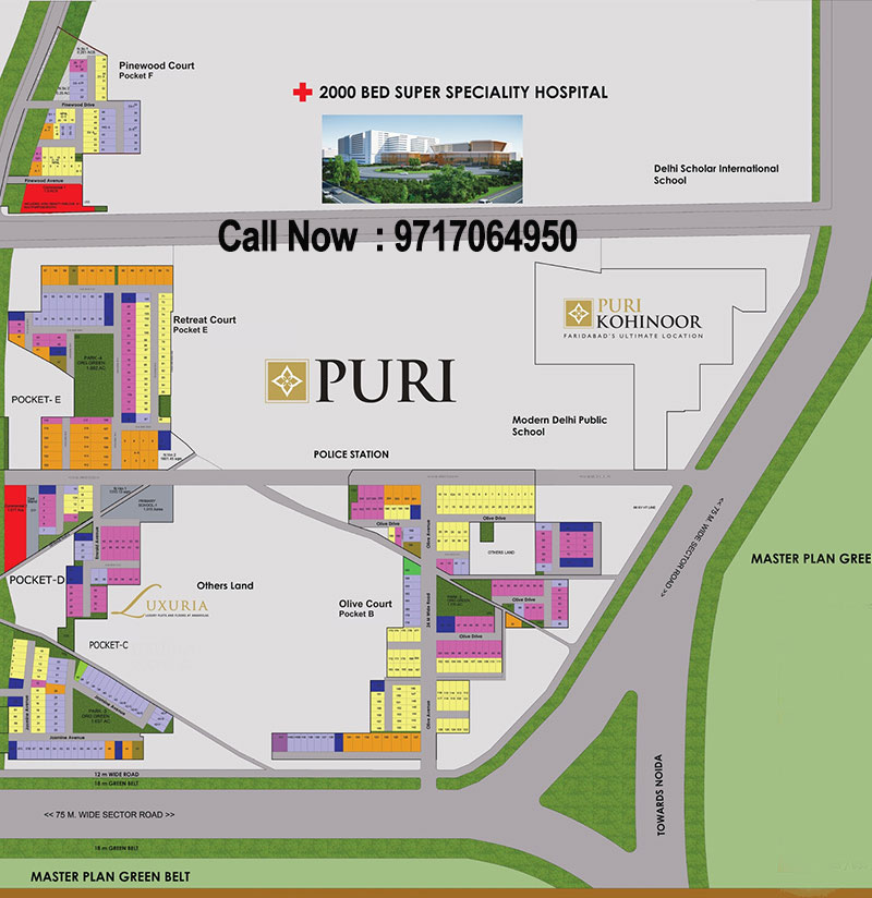 Puri Kohinoor: Faridabad Premium Location and Best Project of Puri Constructions till date with limited number of ready to move plots starting from 100 sqyds. to 180 sqyds.